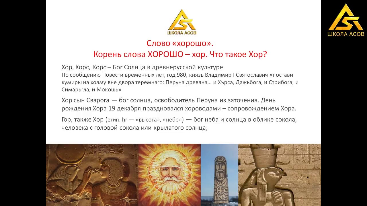 Посмотрите фильм "Игры Кальмара" без дубляжа, а с русскими субтитрами. Этот фильм корейский. Когда герой разговаривает с матерью по телефону то он произноси несколько раз "хиреше, хиреше", а в субтитрах (я смотрела с английскими субтитрами) переводят "good, good". Вот так все просто. Это азиатское слово которое пришло из монголотатарской орды. Именно тогда когда московиты собирали дань для своих монголотатарских господ, а они им отвечали "хиреше, хиреше" продолжайте служить нам в том же духе. Похвала была связана с этим "хиреше" вот так оно и вошло в российскую речь, добавилось к церковно славянскому. А потом пишут что слово "хорошо" неизвестной этимологии. Это что не было в России знаний об азиатских языках??? Не нашлось ни одного изучающего корейский который бы заметил чудестное сходство (может в монгольском языке это тоже хиреше???) Или намеренно скрывали что это азиатское слово, чтоб невыпячивать многовековое сотрудничество московии с Золотой Ордой??? Бога Хора какого то притянули за уши иначе никак не об'яснить. Хор и Хорошо "схожі як свиня на коня, та хвіст не такий".(украинская поговорка).