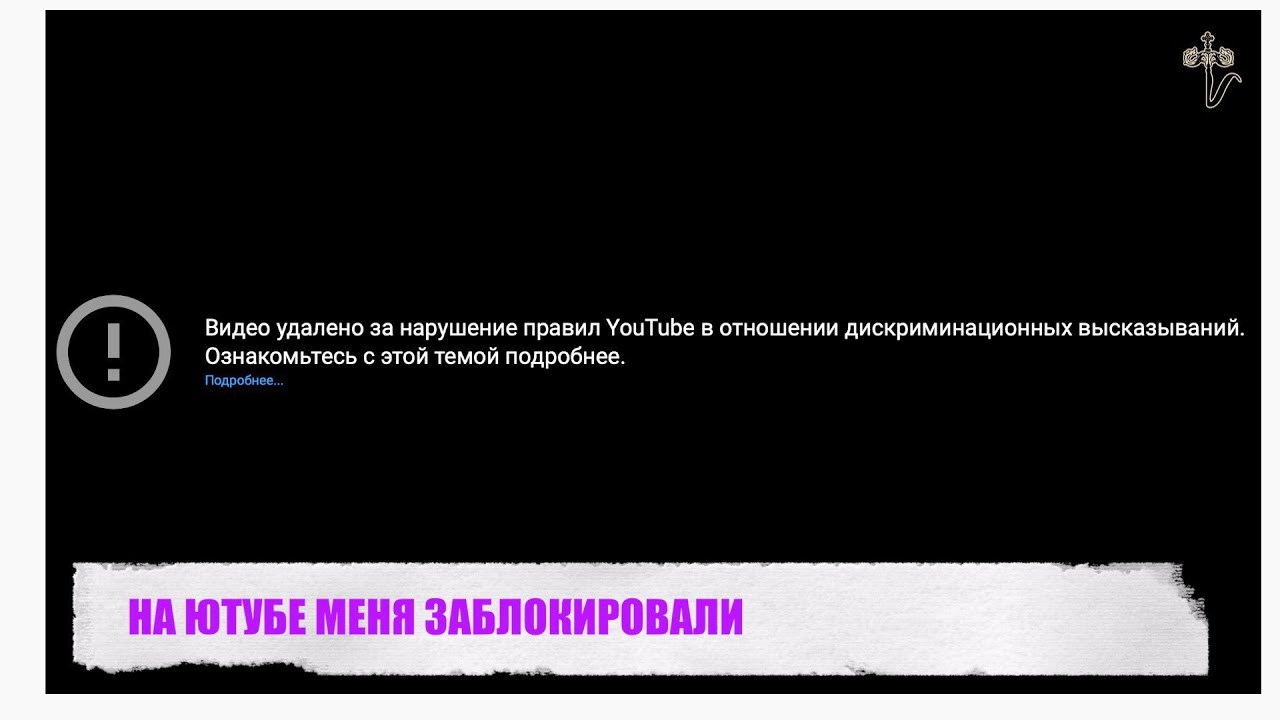 НА ЮТУБЕ МЕНЯ ЗАБЛОКИРОВАЛИ