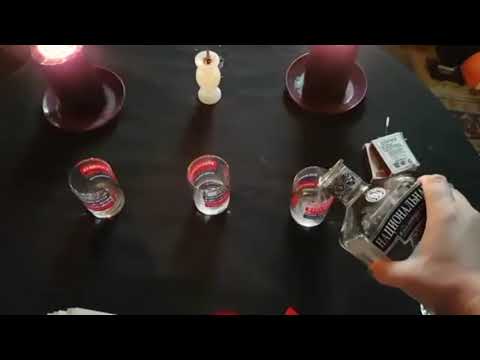 Нам понадобится: Чёрный алтарь(настелите чёрную ткань на стол), чёрные свечи, благовония, рюмки Зшт, водка. Читать слова заговора по одному разу, при этом наполняя водкой каждую из рюмок по очереди.