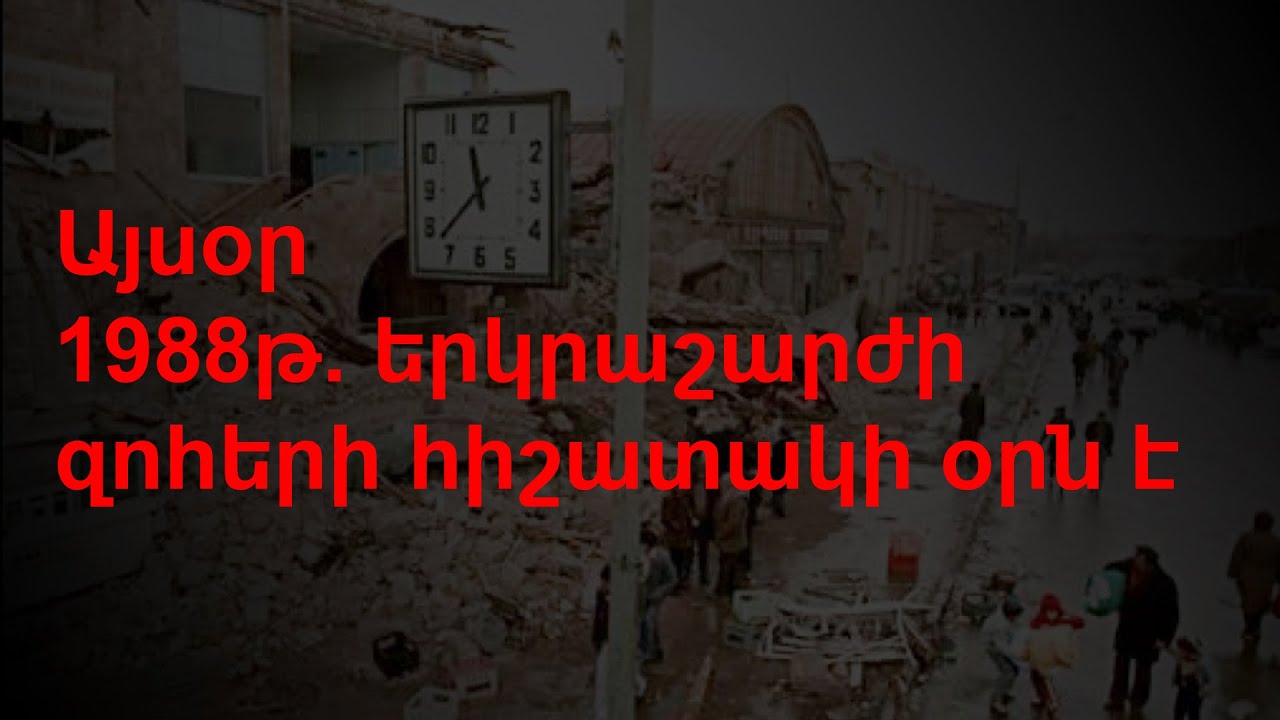 1988 թվականի դեկտեմբերի 7-ին ժամը 11:41 Ռիխտերի սանդղակով 9 բալլ ուժգնությամբ երկրաշարժը մեծ ավերածություններ պատճառեց Հայաստանի հյուսիսային հատվածում՝ Սպիտակ, Լենինական (այժմ՝ Գյումրի), Կիրովական (այժմ՝ Վանաձոր), Ստեփանավան քաղաքներում, բազմաթիվ այլ բնակավայրերում: