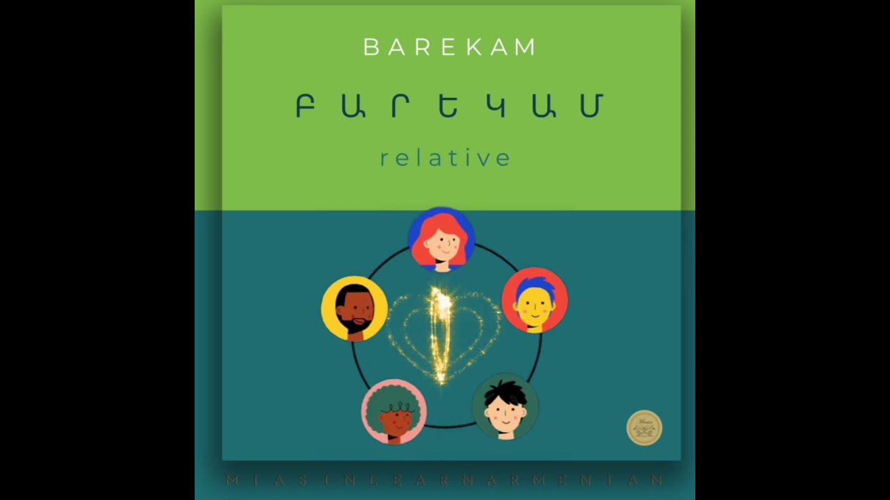 Բարեկամ [ barekam ] 1. relative, family member 2. close friend, person