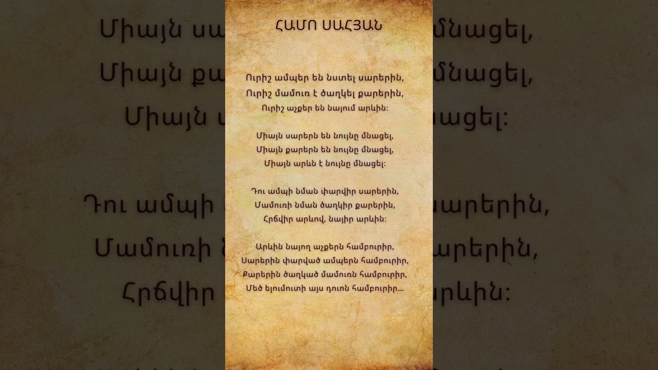 Share Facebook Twitter LinkedIn Pinterest Email Բանաստեղծություններ Համո Սահյան ՈՒՐԻՇ ԱՄՊԵՐ ԵՆ… #sahyan #hamosahyan #սահյան #համոսահյան source Share this: Click to share on Facebook (Opens in new window) Facebook Click to share on X (Opens in new window) X Like this:Like Loading... armenia Asmunq hamo hamo sahyan poezia radio heqiat radioheqiat radioheqyat shorts ասմունք բանաստեղծություններ համո սահյան Համո Սահյան Բանաստեղծություններ հայ հայաստան Հայկական պոեզիա ռադիո հեքիաթ սահյան քառյակներ