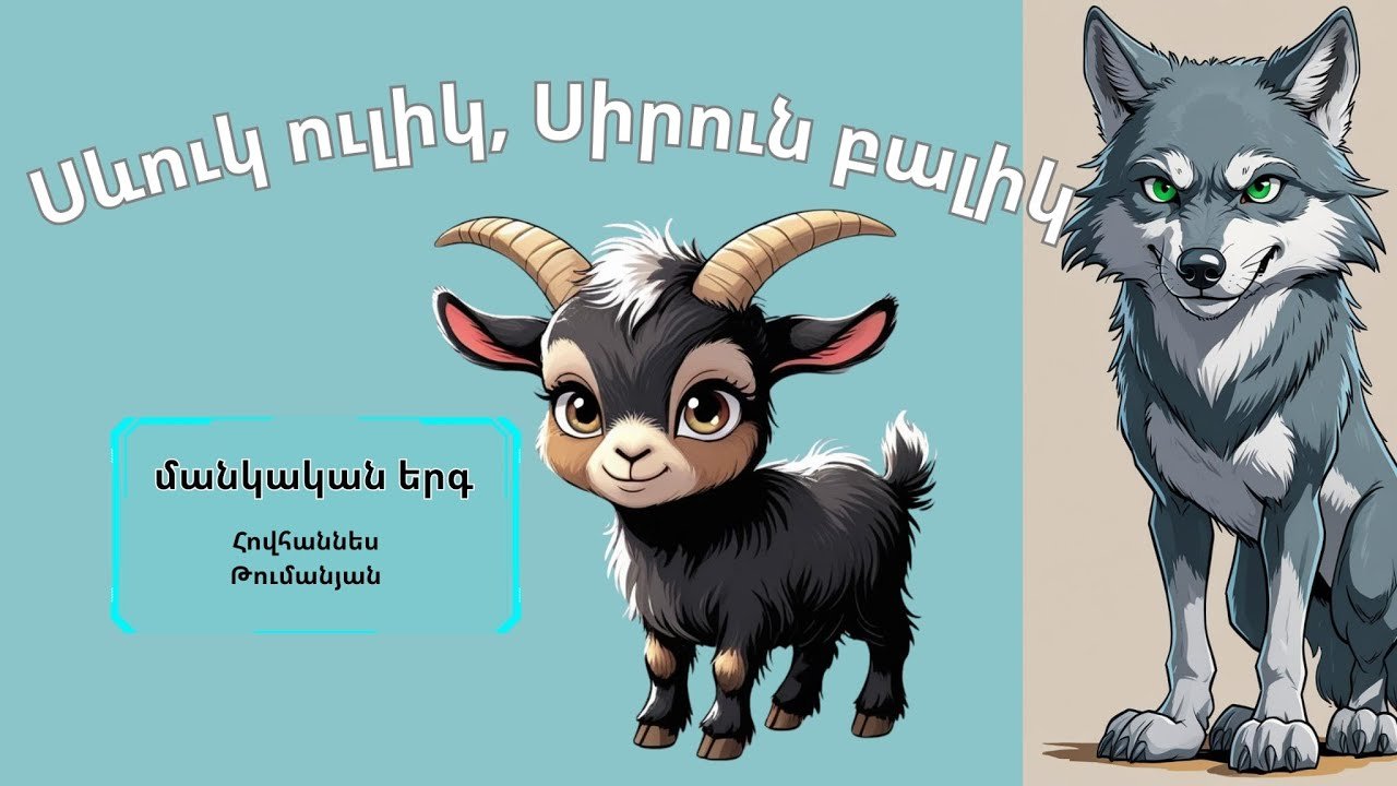 Послушайте армянскую народную песню-сказку “Севук Улик, Сирун Балик”. Эта песня рассказывает о маленьком умном козлёнке, который узнаёт голос своей мамы и не попадается на хитрости волка. Идеально подходит для детей, чтобы познакомиться с армянской культурой и языком. Слушайте, пойте вместе и делитесь!