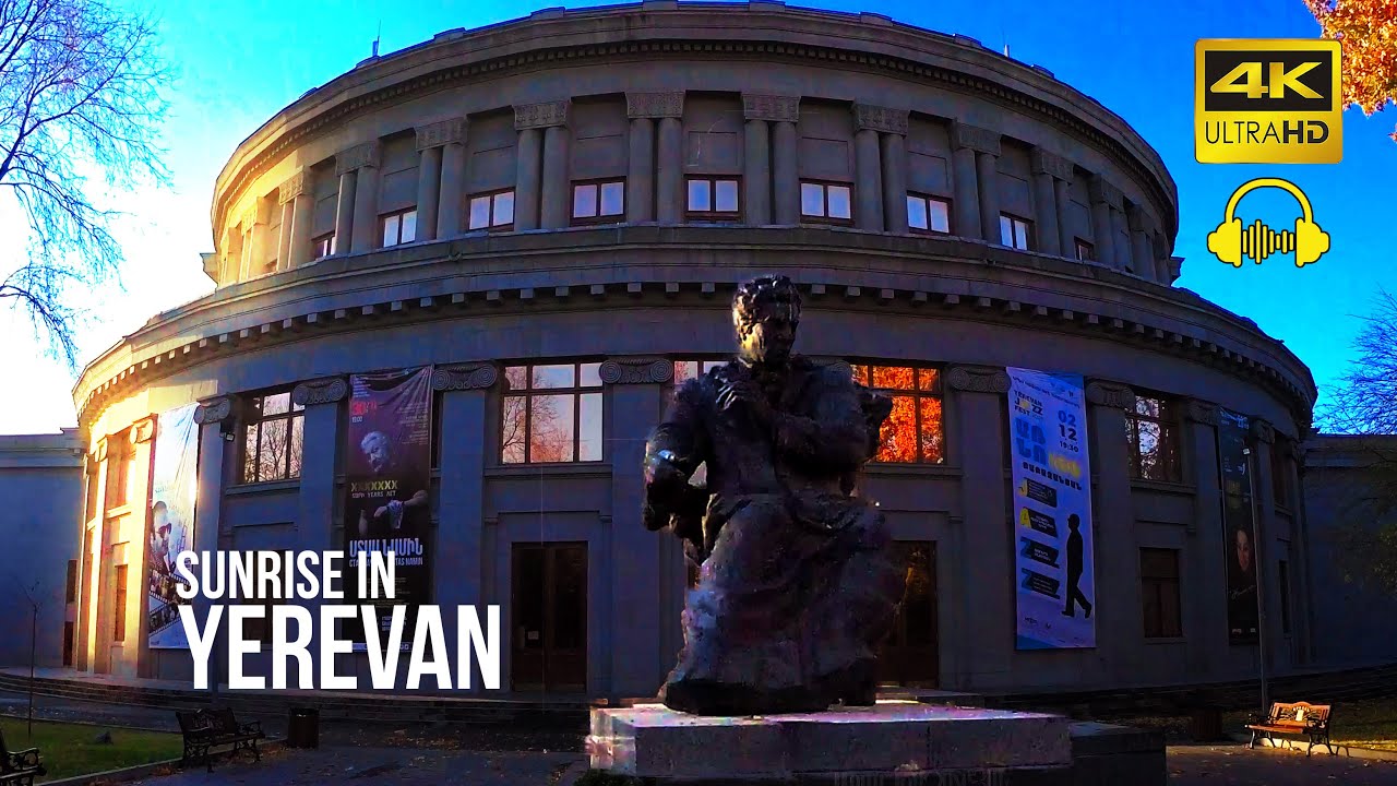 Experience an amazing morning with a beautiful sunrise in the center of Yerevan on December 02, 2021, with my virtual walking tour.